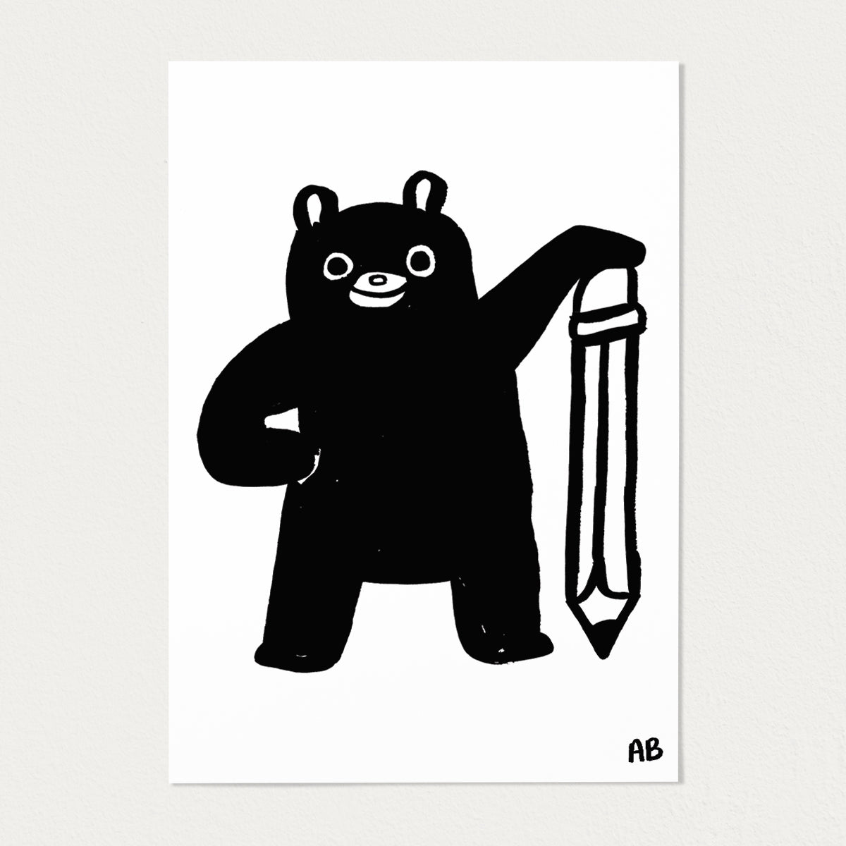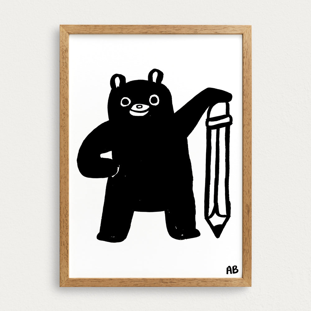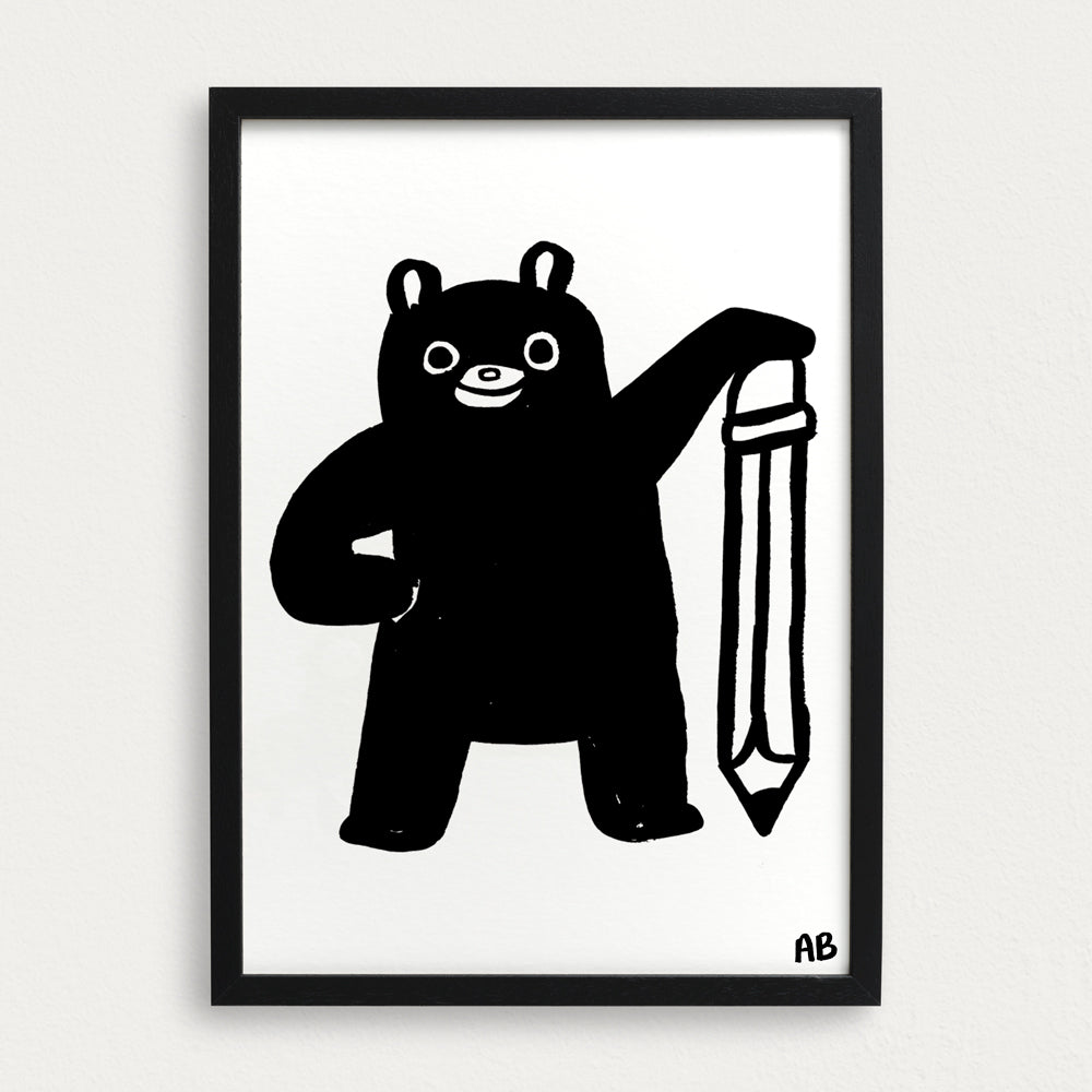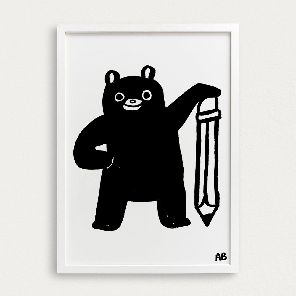Get creative! Add character and fun to your decor with this adorable bear & pencil print in monochrome.