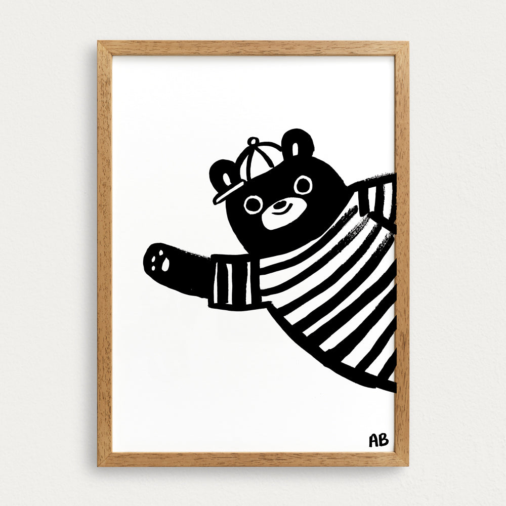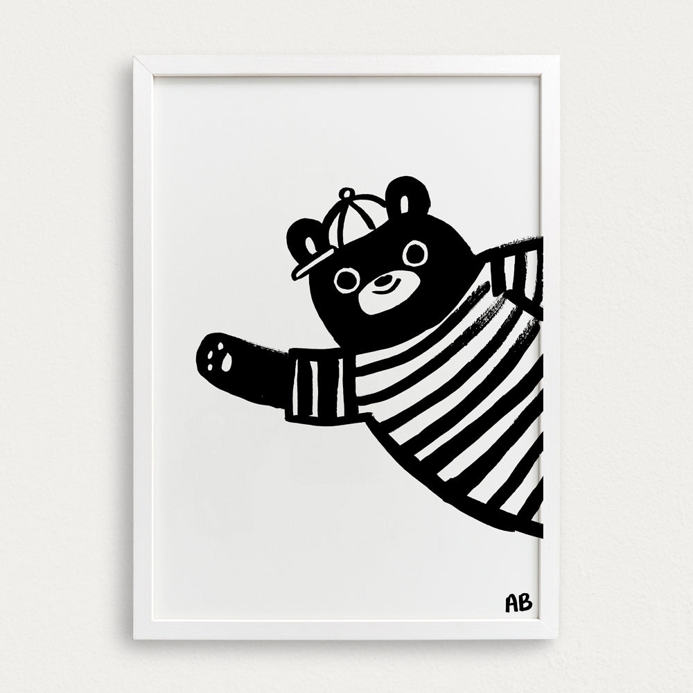 Say hello to this delightful bear print in monochrome, created by artist and children's book author Alice Bowsher.