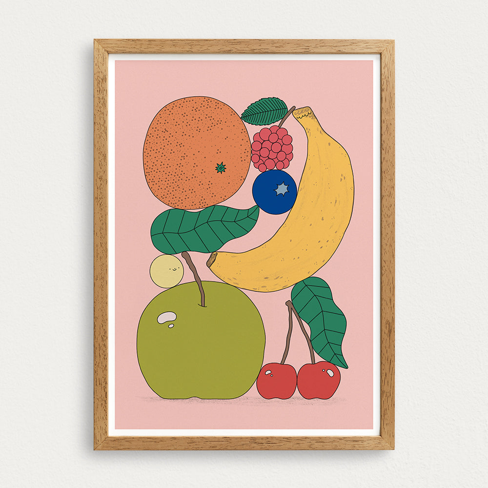Inspire your little ones to get their 5 a day with this playful fruit art print by Hollie Fuller.