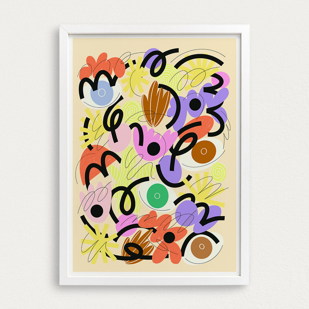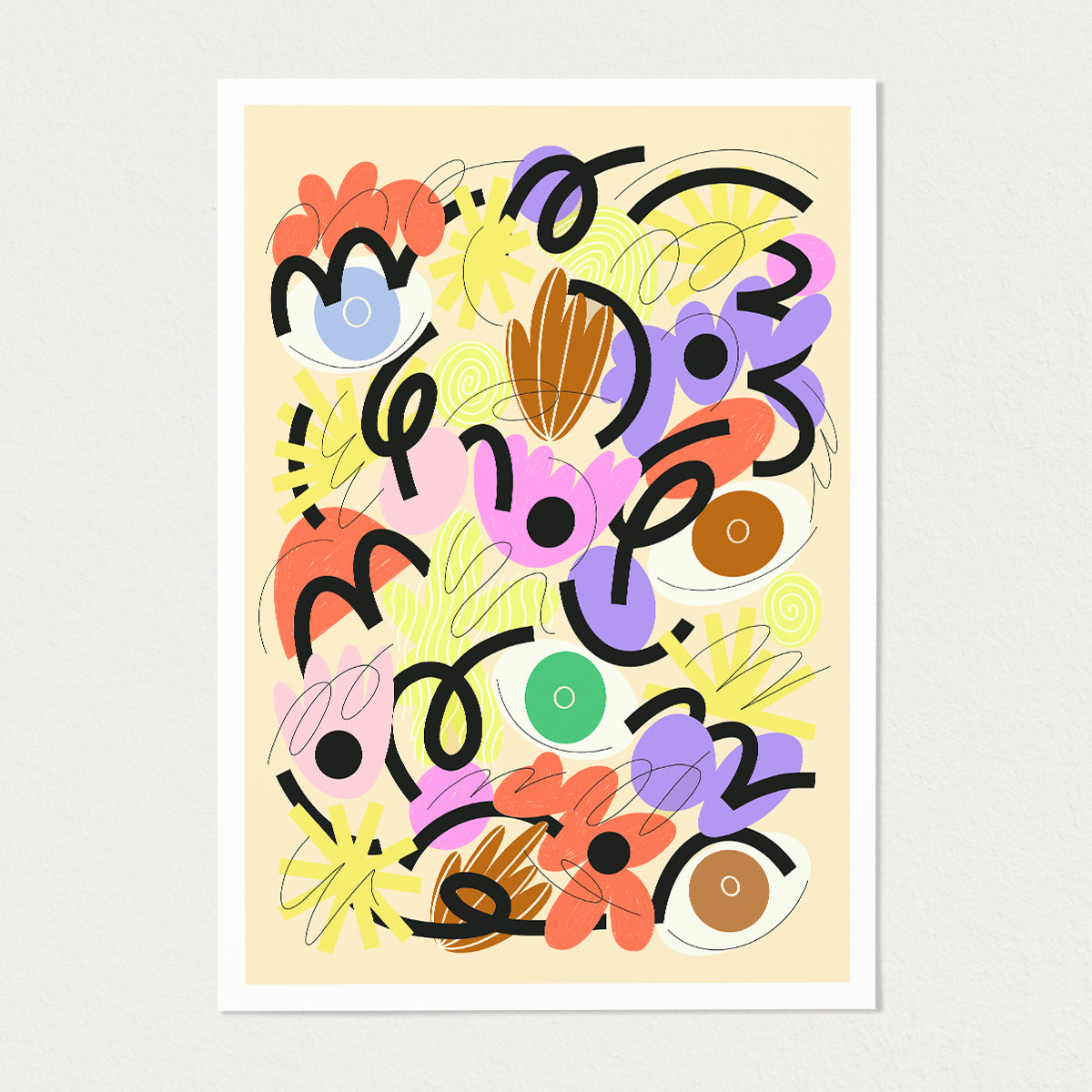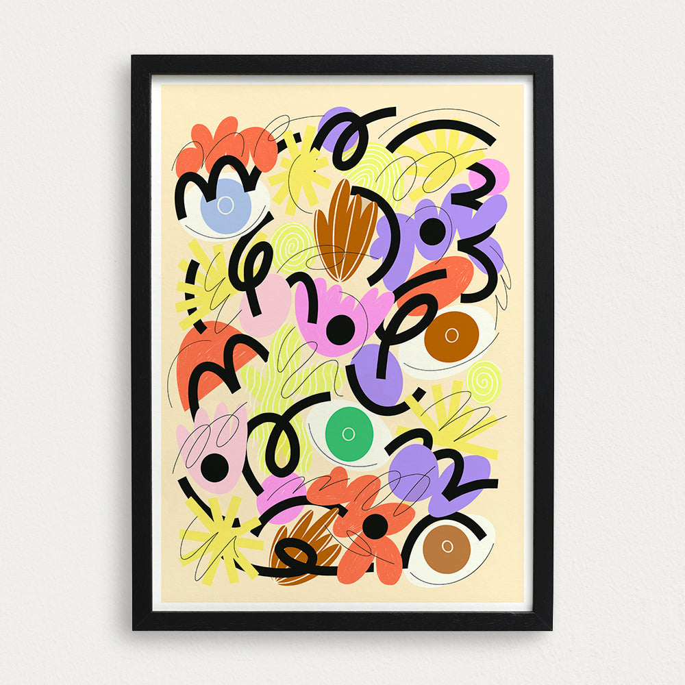 Celebrate the blooms of spring and summer with this joyful floral print created by Caroline Dowsett.