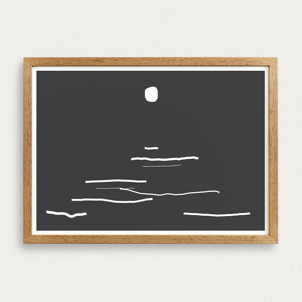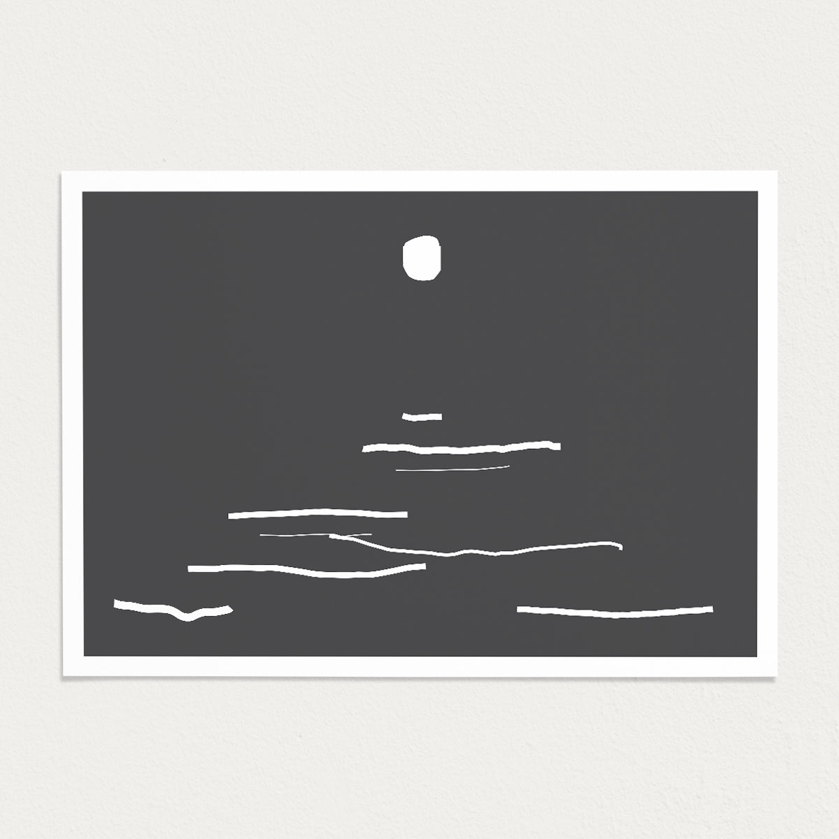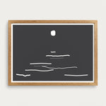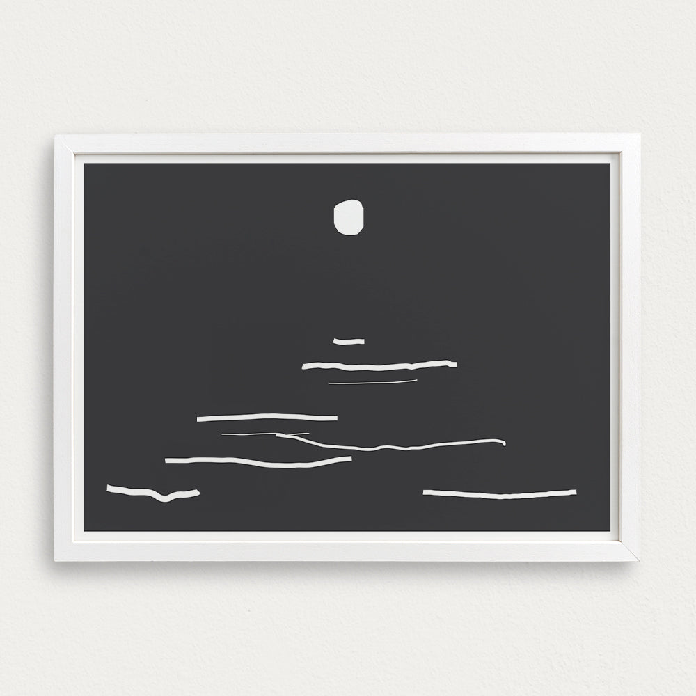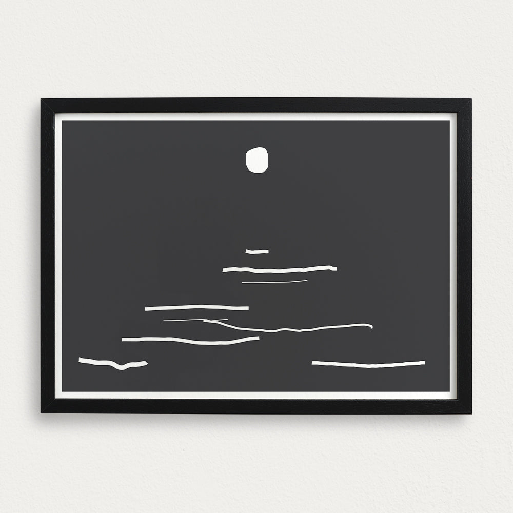 Sit back and enjoy the serenity of a full moon over the calms of the lake in minimalist monochrome.