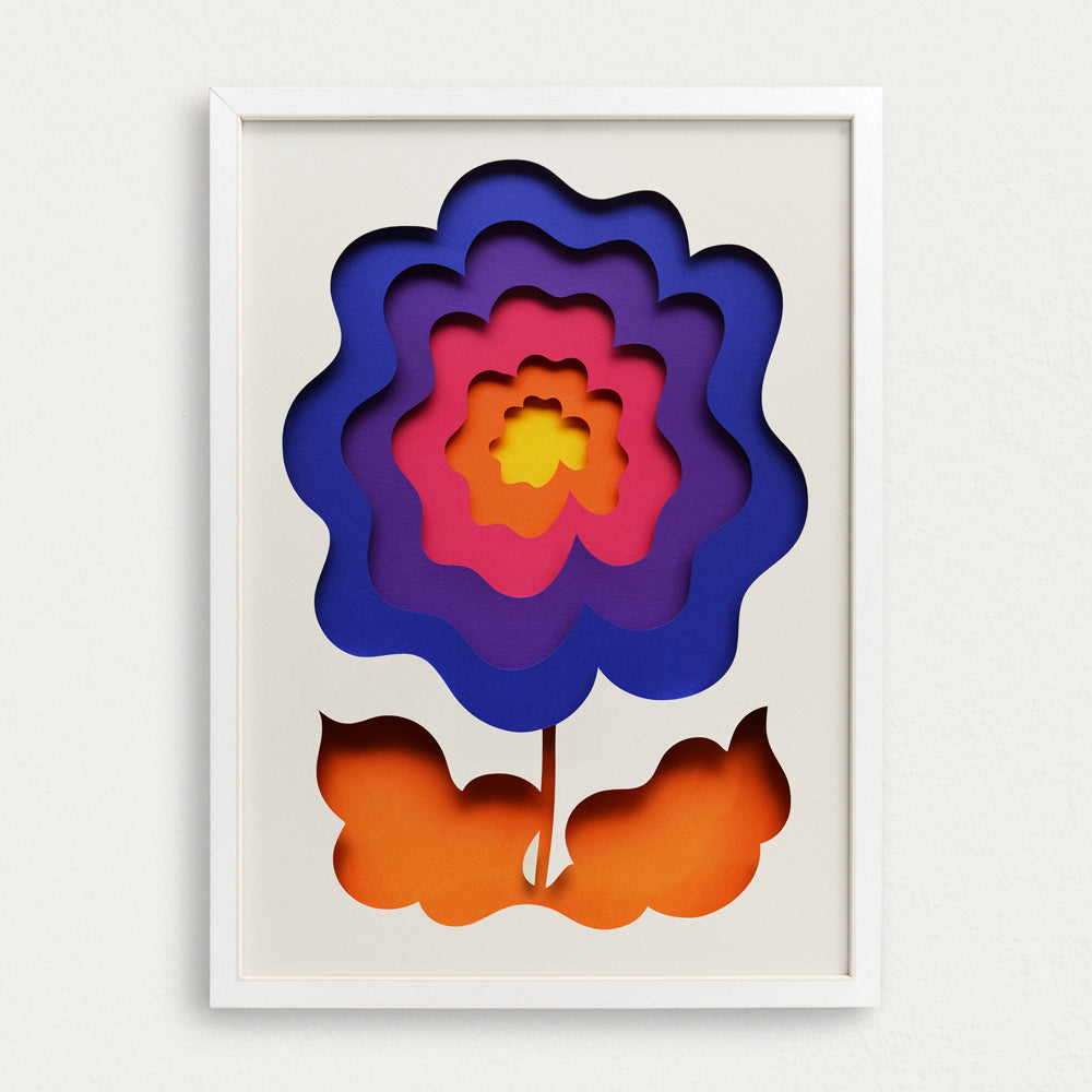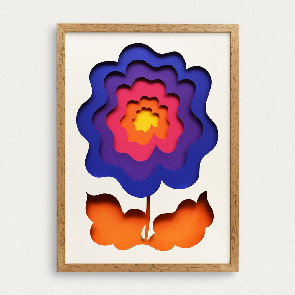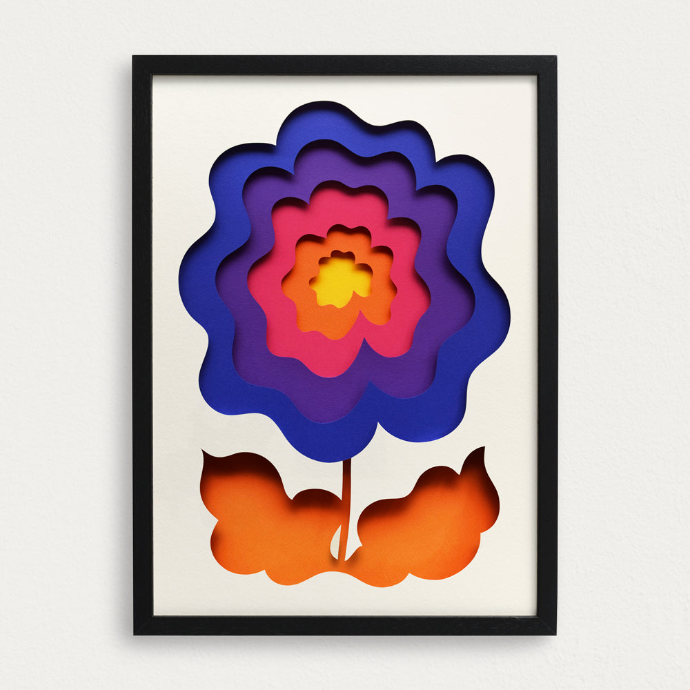 Bloom beautifully all year round! One of three bright and bold floral pieces created by artist Owen Gildersleeve. Original crafted by hand using layers of coloured paper.